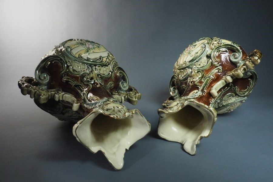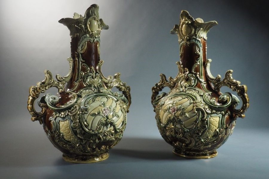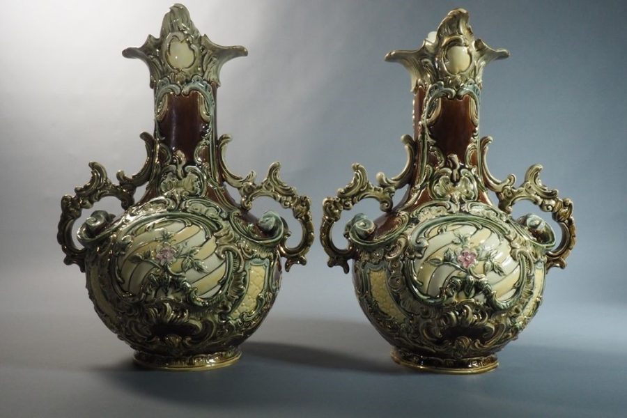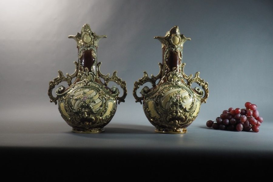 Par leur élégance de forme, la richesse de leur relief et leur remarquable état de conservation, cette Paire de vases Rocaille Bohême constitue un exemple exceptionnel du savoir-faire raffiné des céramistes bohèmes de la fin du XIXᵉ siècle, et plus particulièrement de la manufacture Wilhelm Schiller & Sons, l’un des plus grands producteurs de faïence artistique de son époque, l’un des plus grands producteurs de faïence artistique de son époque.