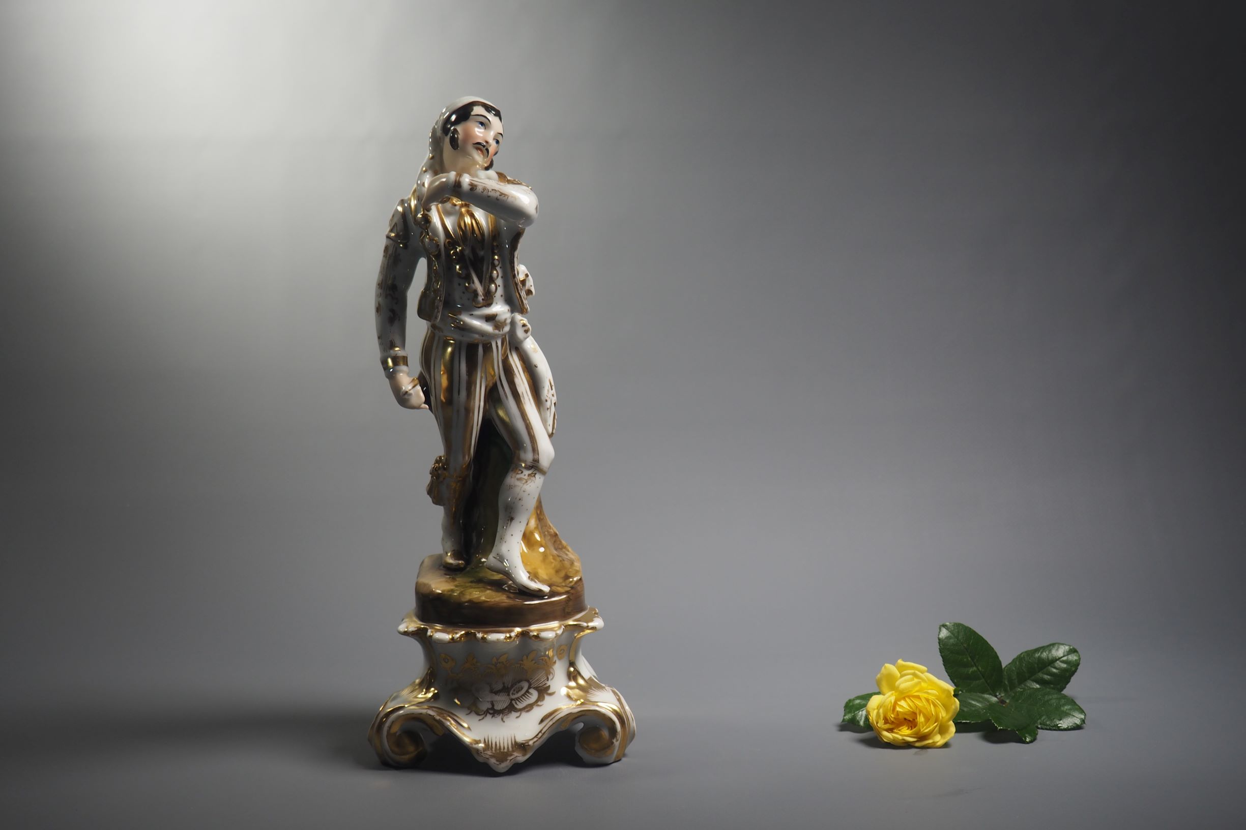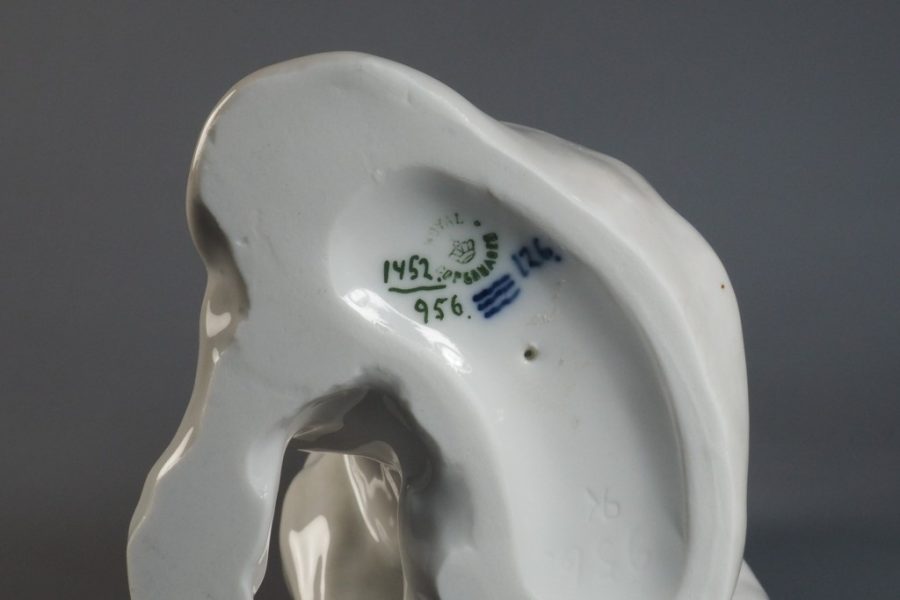 Statuette en porcelaine polychrome, glaçure. Danemark, Copenhague, Manufacture de porcelaine de Royal Copenhagen, fin 19e – début 20e siècle. Marque Royal Copenhagen de la période 1889-1922, sous glaçure et surglaçure.